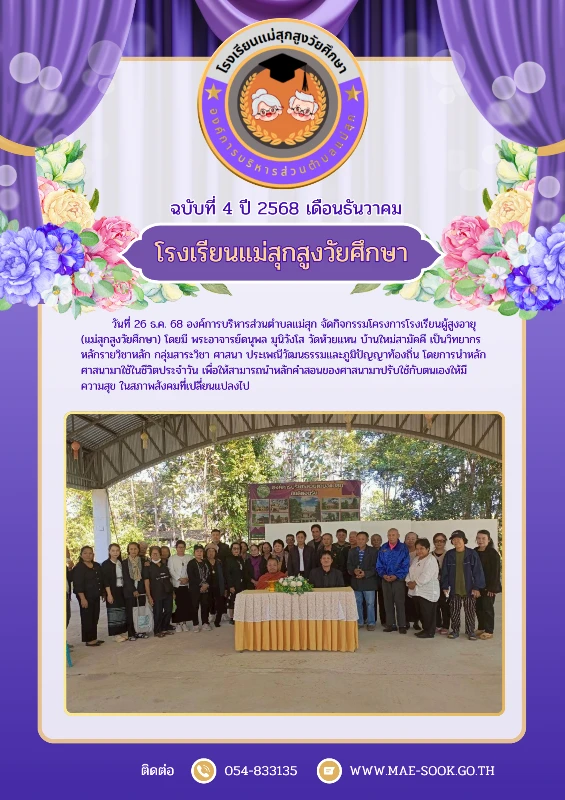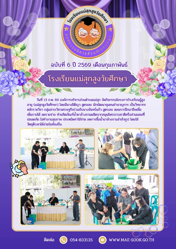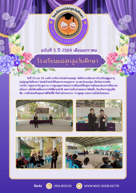 ยินดีต้อนรับเข้าสู่องค์การบริหารส่วนตำบลแม่สุก ติดต่อสอบถาม : โทรศัพท์ 054-833135 โทรสาร 054-833134 Email: maesook159@gmail.com , saraban@mae-sook.go.th